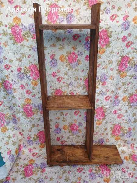 Цветарник, ръчна изработка от чамов материал. Размери височина 110 см. ширина 60 см. дълбочина 18 см. Може да се направи по различни размери както и от двете страни да има модула в основата.