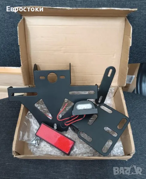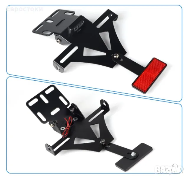 Държач на регистрационен номер за мотоциклет, регулируем, с LED осветление и рефлектор