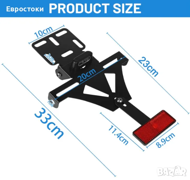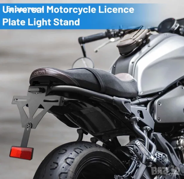 Държач на регистрационен номер за мотоциклет, регулируем, с LED осветление и рефлектор, алуминий, съвместим с повечето популярни модели мотоциклети.