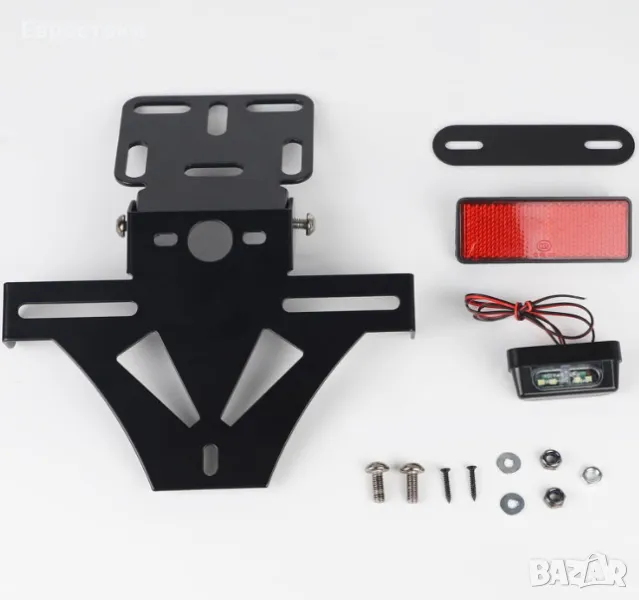 Широка съвместимост. Съвместим с повечето популярни модели, като Honda, Yamaha, Suzuki, Kawasaki, Ducati и др. (моля, проверете размера преди покупка). Пакетът включва LED осветление за регистрационен номер, рефлектор за мотоциклет и държач за регистрационен номер и някои гайки и винтове, както е показано на снимката.