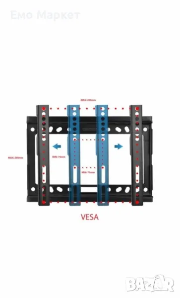 Регулиране на наклона: +/- 15 градуса - VESA 75x75mm – 200x200mm. -