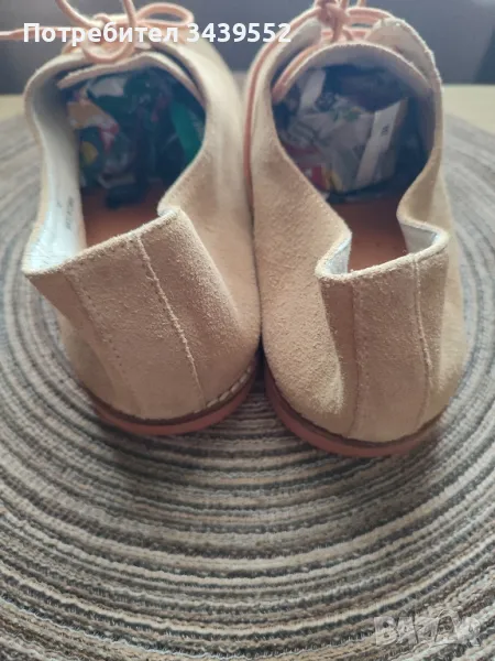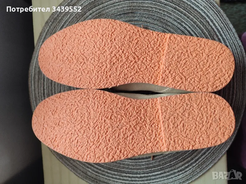 Нови не обувани мъжки обувки, размер 43, стелка 27,6см., бежов цвят. Изработени изцяло от естествени материали. Отвън са бежов велур/набук, подвижна дишаща стелка от естествена кожа, като от вътрешната страна също са от естествена кожа. Подметката е изработена от каучук в оранжев цвят. Много леки и удобни за пролетно летен сезон и в комбинация с ленени дрехи.