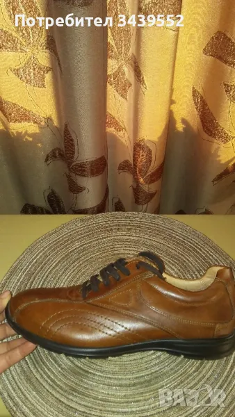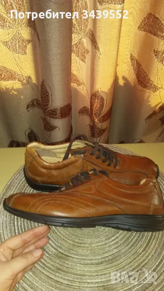 Мъжки обувки естествена кожа BATA. Размер 44, цвят кафяв. Купувани от чужбина, но се оказаха неподходящи за нас - изобщо не са обувани. Вътрешната част- изцяло от естествена кожа с дишаща стелка.