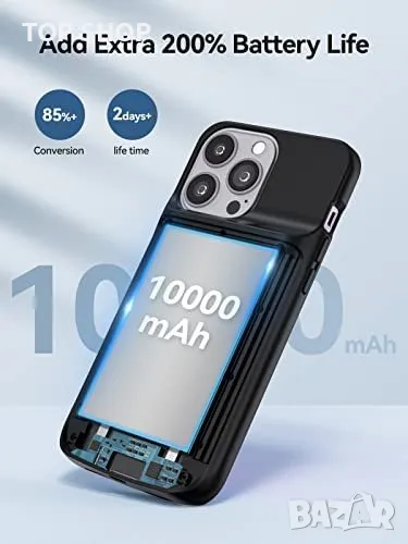 Този калъф с батерия е съвместим с iPhone 14 Pro Max, iPhone 14 Plus, iPhone 13 Pro Max и iPhone 12 Pro Max 6,7 инча. Изграден е с мощен капацитет от 10000 mAh, който удължава живота на батерията на телефона ви с 200%, което го прави идеален за ежедневни интензивни потребители, бизнес пътувания или пътешествия.