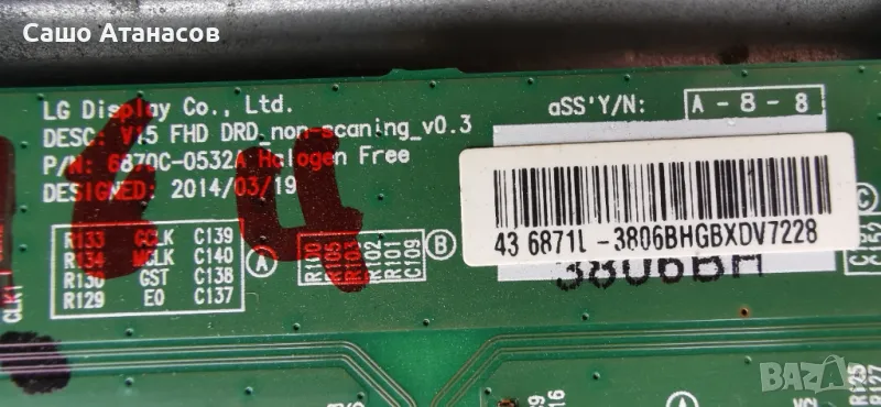 T-Con Board: V15 FHD DRD_non-scaning_v0.3 / 6870C-0532A Halogen Free / 6871L-3806B - 30лв.