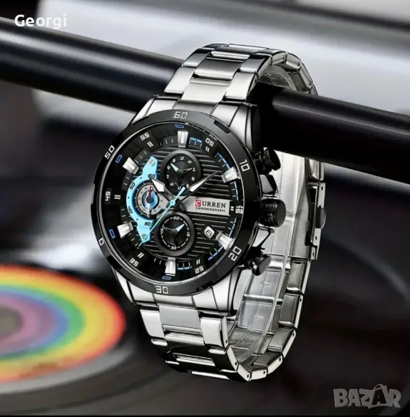 Елегантен кварцов часовник Curren Sports сребристо/син мъжки часовник със стоманена верижка, стилен дизайн и голям модерен циферблат.