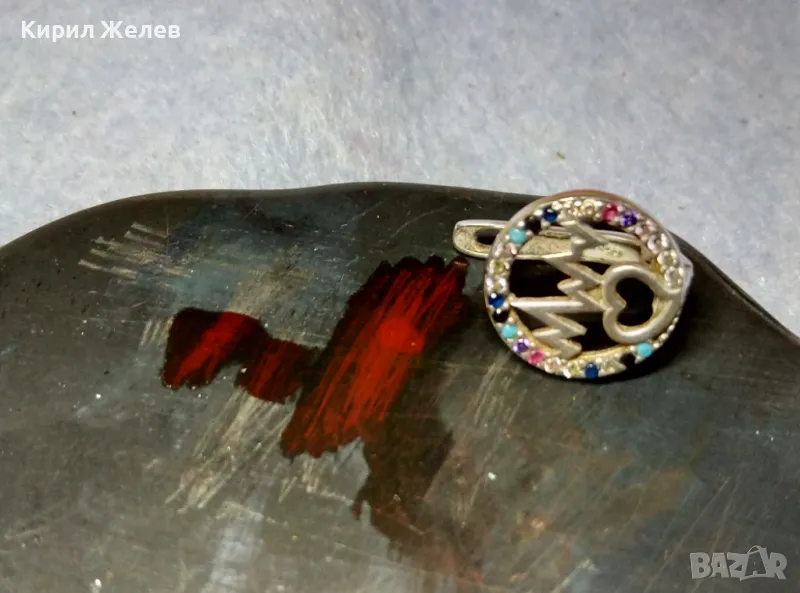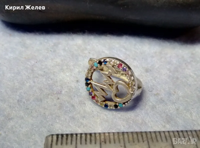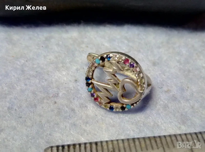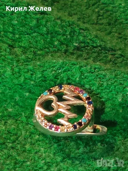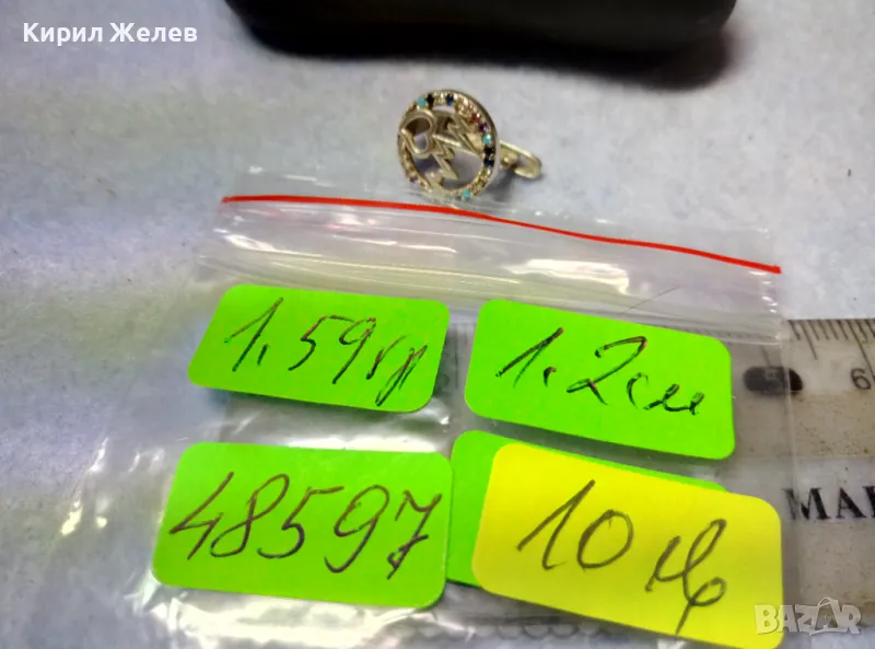 СТАРА СКЪПОЦЕННА СРЕБЪРНА ОБЕЦА СРЕБРО ВИСОКА ПРОБА с РАЗНОЦВЕТНИ ПОЛУСКЪПОЦЕННИ КАМЪНИ 48597