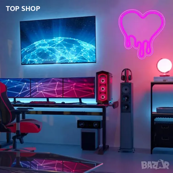 Акрилният неонов знак във формата на сърце служи едновременно като декоративен елемент и функционално табло за съобщения, включващ мечтателен дизайн, който добавя романтичен и уникален щрих към всяко пространство. Включва 12 изтриваеми цветни маркера за лесно писане и рисуване върху LED повърхността. Захранван от USB с дълъг кабел, той може да бъде окачен на различни повърхности, което го прави универсален за спални, всекидневни или зони за игра. Изработен от издръжливи силиконови LED светлинни ленти, той предлага мека, равномерна светлина, енергийна ефективност и дълготрайна работа. Перфектен като декор за дома или замислен подарък за любими хора.