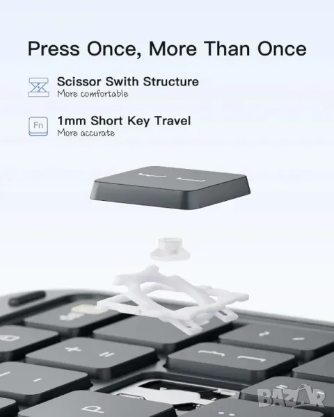 Тази ултратънка клавиатура, с дебелина само 7,6 мм и тегло 454 грама, я прави изключително преносима за лесно носене в ръчна чанта или раница. Той е специално проектиран за различни модели iPad,