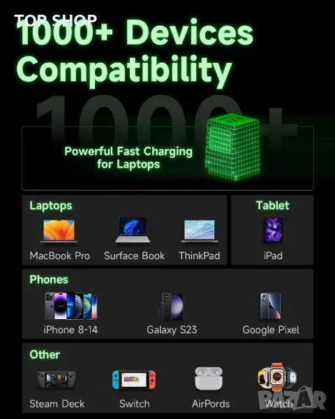 SHARGE USB C зарядно устройство, Retro 67 3-портово, 67W