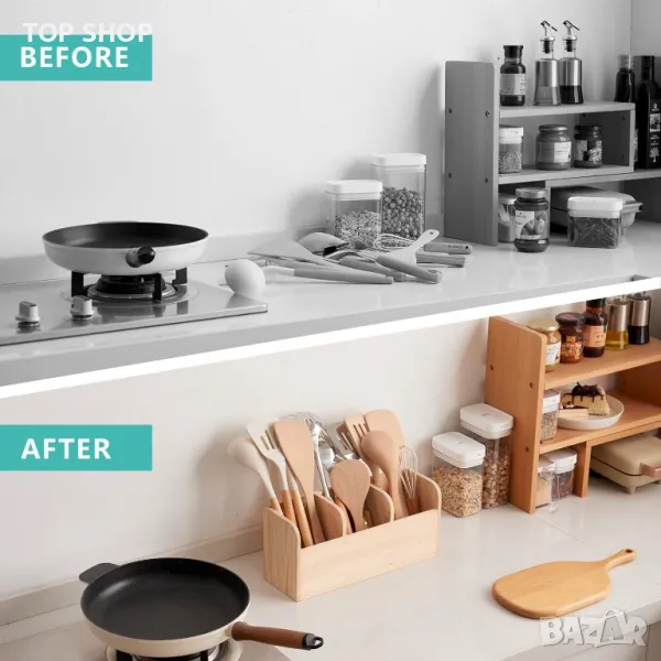 Открийте поставката за прибори, изработена от първокласно дърво Hinoki Cypress, която се отличава с издръжливост и устойчивост на влага. С отличителна дървесна текстура, този държач излъчва елегантност, като същевременно излъчва мек аромат на естествено дърво, който избледнява с времето. Неговият размер от 13,5 x 4,5 x 6,1 инча (34,5 x 11,5 x 15,5 cm) включва три отделения, предлагащи достатъчно място за съхранение на съдове за готвене или прибори, осигурявайки подреден плот и оптимизирано кухненско пространство. Гениалният дизайн включва пропусклив отвор в долната част, улесняващ чистотата и осигурява гъвкавостта на дръжка или окачване на стена. Освен за кухненска употреба, този универсален държач побира различни артикули, от офис консумативи до патрони с четки за грим, повишавайки както организацията, така и естетиката.