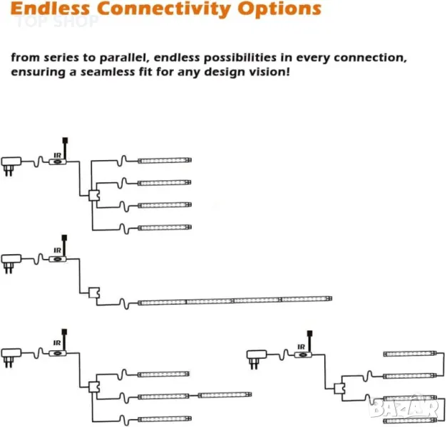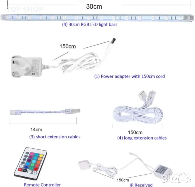 Изпитайте жизнена атмосфера с RGBW LED светлинни ленти, включващи 16 цвята и динамични режими като Fade, Strobe, Smooth и Flash. Всяка 30-сантиметрова лента предлага висококачествено осветление с 3W мощност и 280lm поток, идеални за всяка настройка. Комплектът включва 4-портов хъб и удължителни кабели за гъвкави, свързваеми подредби, идеални за многоетажни рафтове или разширени ленти. Насладете се на лесен plug & play монтаж с това надеждно, дълготрайно решение за осветление, подходящо както за домашна, така и за търговска употреба—идеално за под шкафове, килери, рафтове и подчертаване на произведения на изкуството.