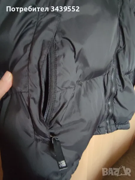 Нова мъжка грейка Karrimor. Много лека с пълнеж от силиконова пух. Има и тънка качулка прибрана отзад в яката. С ципове на джобовете. Размер L (52), дължина от рамото -73см. и ширина 60см.