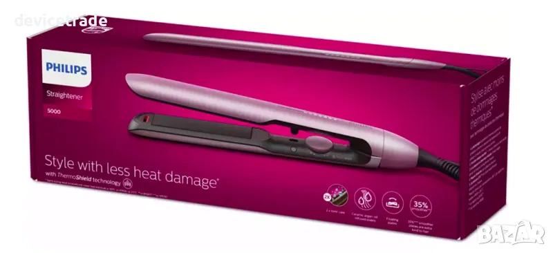 Пресата за изправяне използва керамични плочи с покритие с арганово масло за бързо и безпроблемно оформяне на прически, с действие на плъзгане, което се усеща толкова копринено гладко, колкото изглежда косата ви.