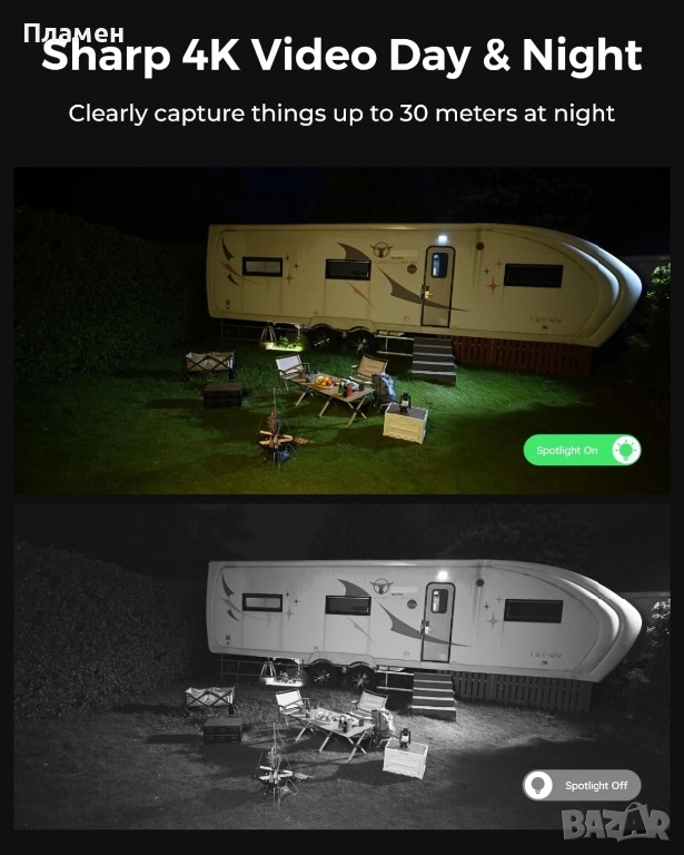 Нощно виждане до 30 метра – IR и цветно (с прожектори)