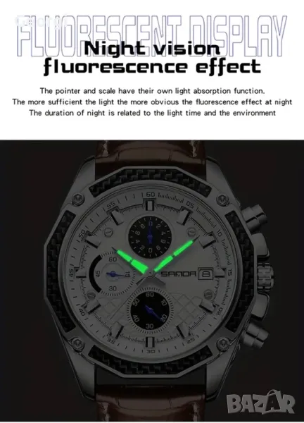 Комбиниран с модерно излъчване и високата функционалност - сертифициран и водоустойчив до 5 Атм. с впечатляващ информативен хронограф/циферблат!