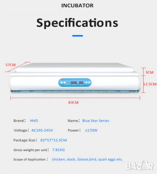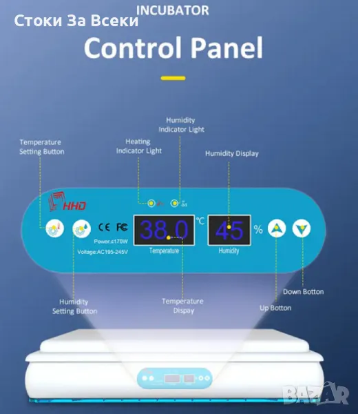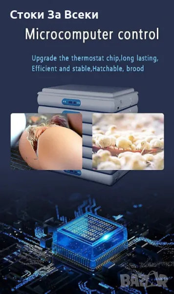 Инкубатор за 120 яйца с микрокомпютър и автоматичен контролер H-120 е иновационен продукт, създаден да осигури оптимални условия за излюпване на яйца от различни видове птици, като кокошки, пуйки, патици и други. Той е подходящ за професионално и аматьорско използване, като осигурява висока точност и надеждност при управлението на температурата, влажността и въртенето на яйцата.