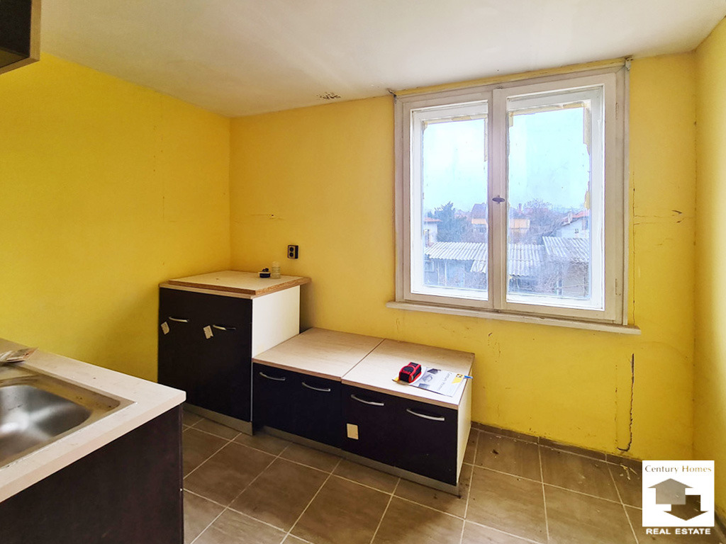 Жилището е разположено на 2-ри етаж, в двуетажна тухлена къща, в кв. Калтинец. С площ от 94 кв. м., то разполага с две спални, дневна с остъклена тераса към нея, кухня, баня с тоалетна и просторно антре. На етажа има също и килер, а в двора в отделна едноетажна постройка са разположени външна баня с тоалетна и складово помещение.