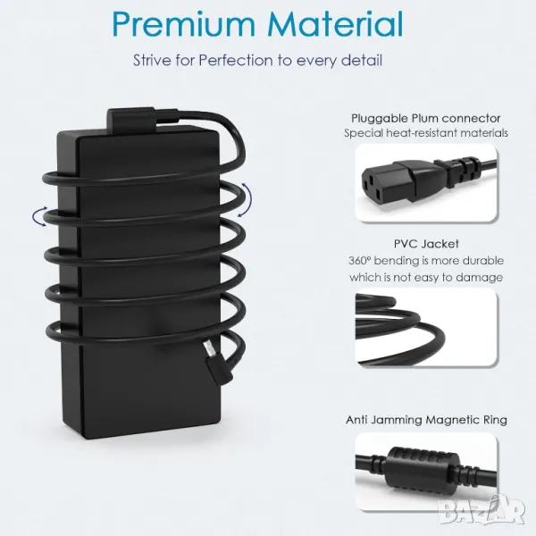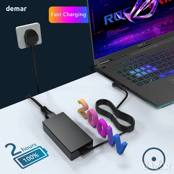 Съвместимо с лаптопи от серията ASUS ROG Zephyrus G15 (2022), M16 и TUF, това зарядно устройство с мощност 200 W поддържа множество модели, включително FX517, FX507, FX506, FX707, FA707, FA507 и FA506. Той осигурява 20V 10A изход и пасва на 6,0*3,7mm DC жак, също така работи със 180W (20V 9A) и 150W (20V 7,5A) зарядни устройства. Сертифициран от CE, FCC, CCC и UL, той предлага множество защити за безопасност, включително защита от пренапрежение (OVP), свръхток (OCP) и защита от късо съединение (SCP).