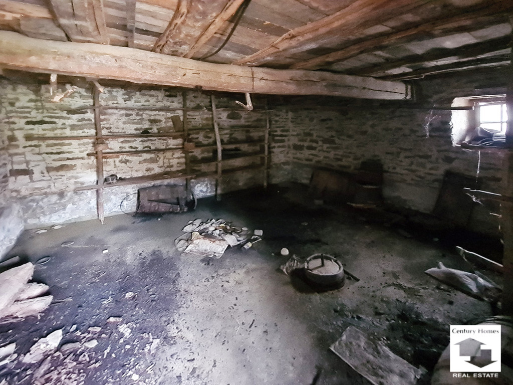 С жилищна площ от 65 кв. м., разпределението на къщата включва две просторни каменни мази на приземния етаж и три стаи, коридор и килер на вторият етаж, достъпен по външно стълбище. Килерът може да бъде преустроен в санитарен възел, стаите на етажа да се превърнат в спални, а мазите в кухня и дневна.