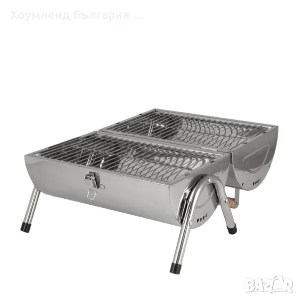 Преносимо барбекю с капак за къмпинг и градина от неръждаема стомана.