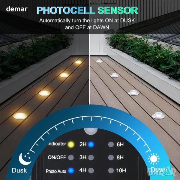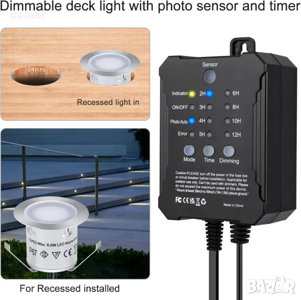 SMY Lighting Димируеми LED палубни светлини с таймер и фотоклетка, 20 броя, IP67
