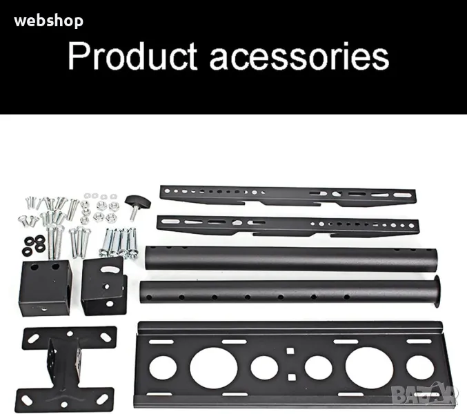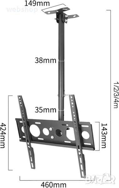 - Универсална ТВ стойка за таван за екрани с 26-60 инча и ротация на 360 градуса - 1 брой;