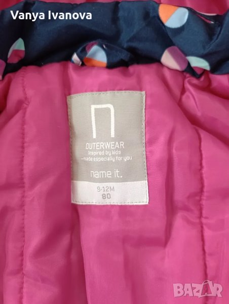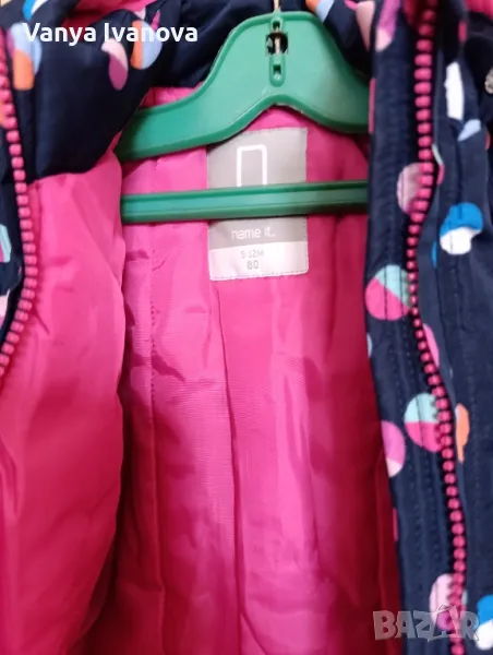 Яке на марката name it ,размер 80 .Има джобчета , качулката е с тик так копчета и може да се маха.Якето е много добре запазено.