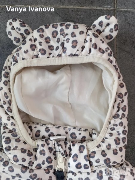 Шушляково елече в леопардов принт.Качулката е с тик так копчета и може да се маха .Една малка забележка по канта на качулката , подарявам тюрбана от снимките.