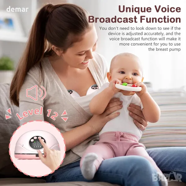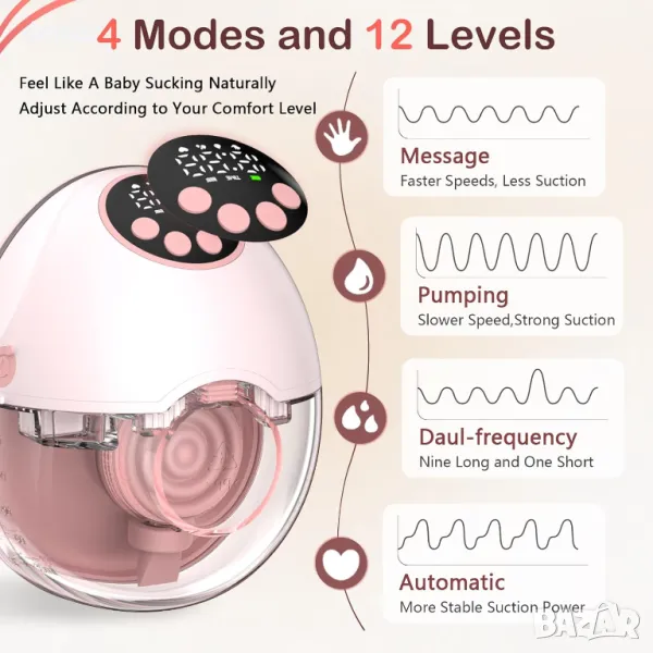 Тази носима електрическа помпа за кърма разполага с функция за гласови подсказки за актуализации в реално време, елиминирайки необходимостта да проверявате екрана. Това е единственият модел с нагревателна основа, осигуряваща нежна топлина за подобряване на притока на мляко и предотвратяване на запушвания. Вградената функция за UV дезинфекция стерилизира помпата, осигурявайки хигиена и спокойствие. С четири режима и 12 нива на засмукване, той се адаптира към различните нужди за комфортно изживяване. Неговата тиха работа позволява дискретна употреба във всяка обстановка, докато материалите без бисфенол-А, подходящи за храна, гарантират безопасност. Лекият, преносим дизайн и издръжливата батерия позволяват изпомпване навсякъде, което прави кърменето по-удобно.