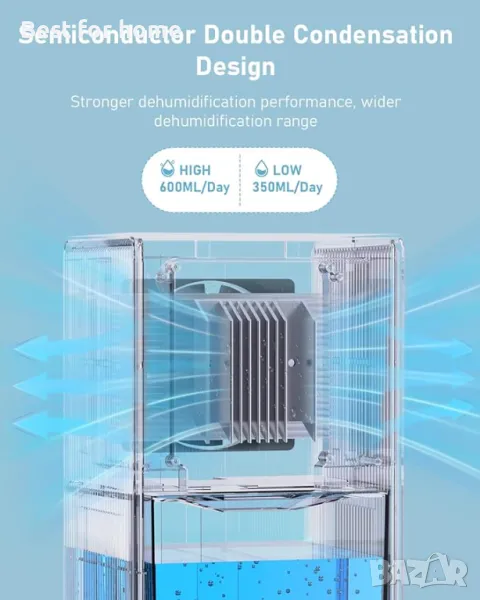 【Интелигентно и ефективно обезвлажняване】 Домашният обезвлажнител с полупроводникова кондензационна технология за ефективно премахване на влагата от въздуха, пълно намаляване на влажността и осигуряване на суха и комфортна среда. Много е подходящ за малки затворени пространства като спални, бани, гардероби и шкафове.
