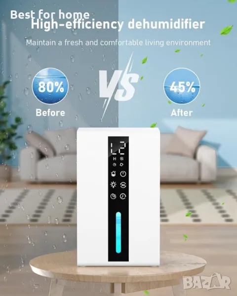 【Идеален за малки пространства】 Домашният влагоуловител е перфектен за зони с висока влажност, независимо дали става дума за малък сутерен, баня или спалня. Ефективно намалява влагата, което прави вашето пространство по-удобно и по-малко податливо на увреждане от влага.