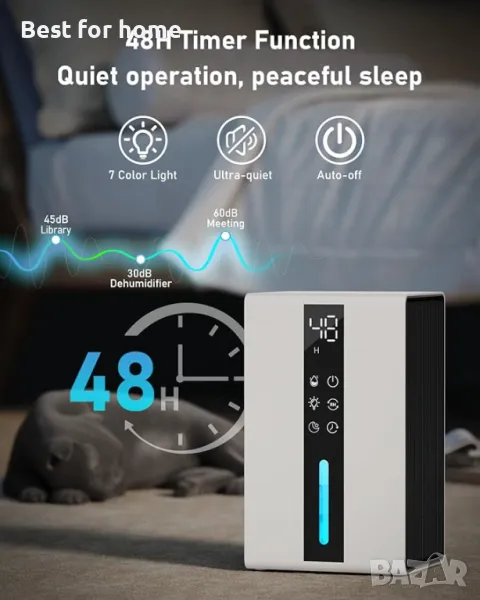 Изсушител KIMBONNI Автоматичен режим на заспиване, 48 часа таймер, автоматично изключване, 7 цвята светлина, преносима плесен и влага за изба, баня, килер.
