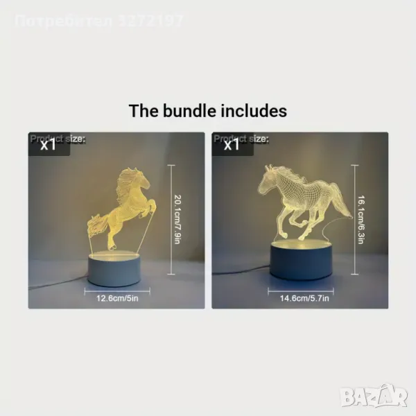 Холограмна 3D LED лампа - Кон → Обява 49527289