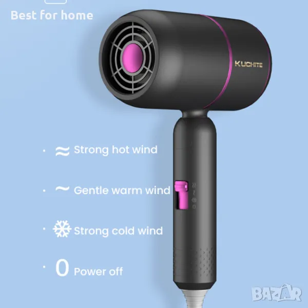 Сгъваем сешоар NTC постоянен контрол на температурата. Грижа за косата с отрицателни йони. Намаляване на шума .Сешоар за салон, бързо изсъхване. Използване при пътуване у дома.