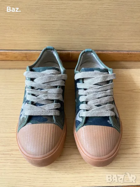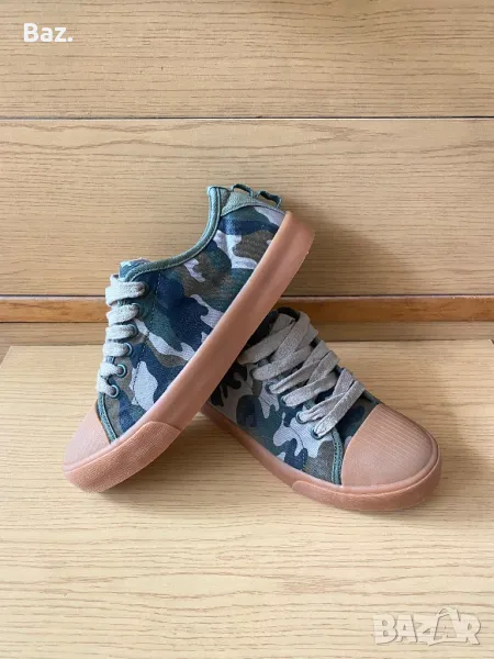 Оригинални кецове ZARA номер 38 / 39 , дължина на стелката 25.4 см .Кецовете са неразличими от нови без забележки ,обувани са само за проба . Изработени са от памучен текстил със камуфлажна разцветка , каучукова подметка и мека ортопедична стелка . Изпращам по куриер с тест може и лично предаване