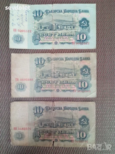 Продавам 3 броя банкноти от 10 лева -България 1974 година.Цената е за всичките., снимка 1 - Нумизматика и бонистика - 49528504 Продавам 3 броя банкноти от 10 лева -България 1974 година.Цената е за всичките., снимка 2 - Нумизматика и бонистика - 49528504 1/2