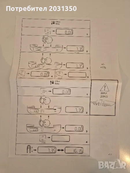 Функция за игнориране теглото на пелената, поставена под бебето.