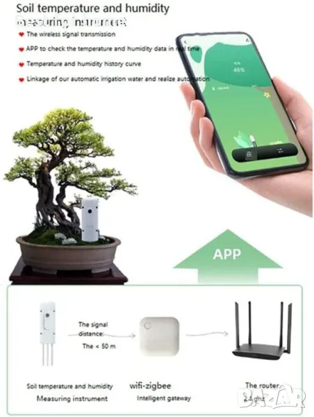 Безжичен измервател на температурата и влажността на почвата, който може едновременно да измерва влажността и температурата на почвата и да се свързва с приложението Tuya чрез Zigbee