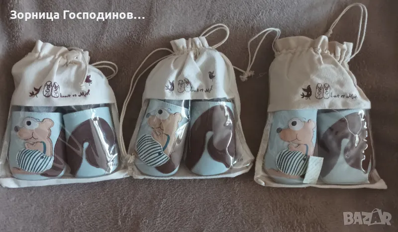 Продавам нови много сладки детски пантофки на френската фирма Lait Et Miel. Пантофките са меки, изработени от 100 % телешка кожа с усет и грижа за малките детски крачета и със забавни детски мотиви.