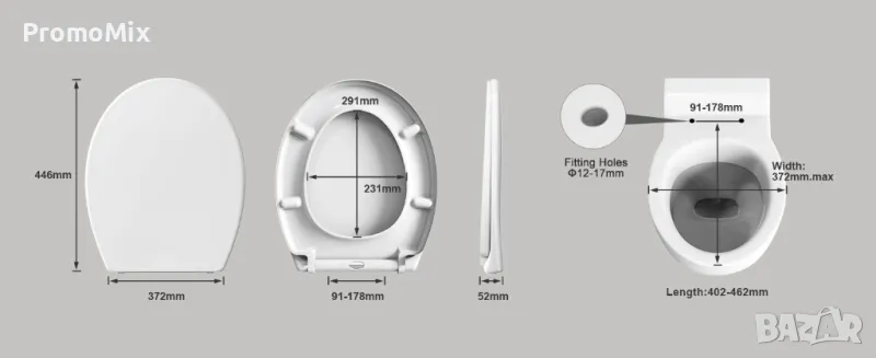 Тоалетна седалка с капак Pipishell PIBTC01 дъска за тоалетна чиния плавно затваряне WC чиния