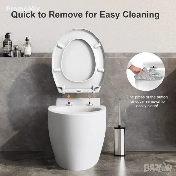 Системата за бързо освобождаване на седалката само с натискане на един бутон, осигурява лесно и хигиенично почистване.