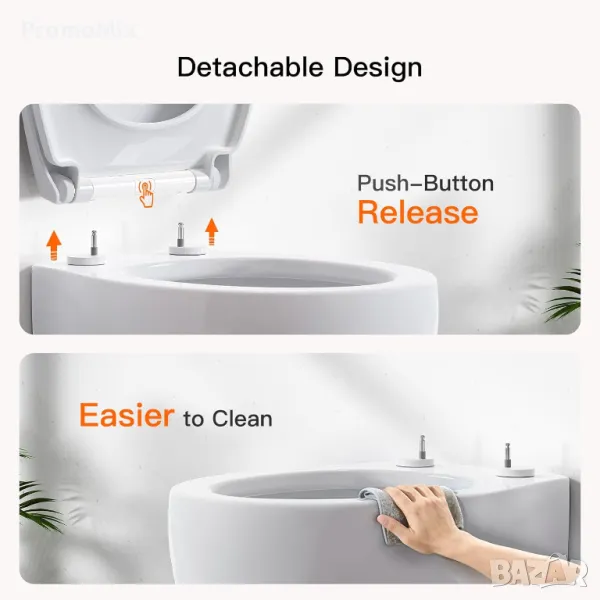Системата за бързо освобождаване на седалката само с натискане на един бутон, осигурява лесно и хигиенично почистване.