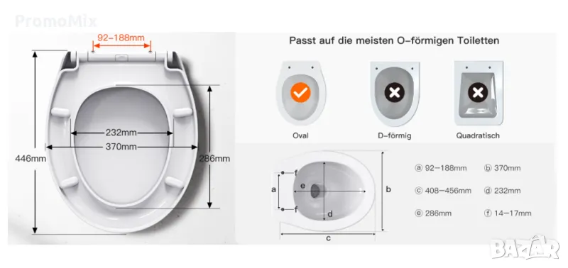 Тоалетна седалка с капак Pipishell PIBTC03 дъска за тоалетна чиния плавно затваряне WC чиния