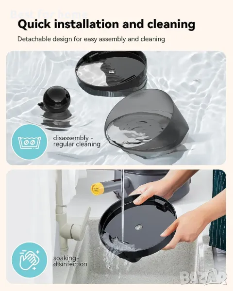 【Бързо решаване на проблеми】 Преди да използвате фонтана за вода за домашни любимци, почистете фонтана за вода за домашни любимци и накиснете филтъра за 5 минути.