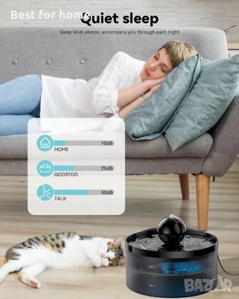 【Ниво на сън】 За да намали шума, купата за котки с воден фонтан на GOOSTOO използва безшумна водна помпа. Безшумната водна помпа работи при нисък звук от 25dB. Вечер почти не се чува. Осигурете тиха среда за сън за вас и вашия домашен любимец. LED светлината на водната помпа улеснява нощното пиене за домашни любимци. (Почиствайте водната помпа на всеки две седмици, за да удължите живота на помпата.)