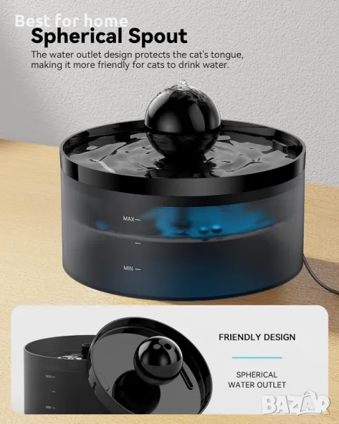 【Уникален дизайн на кълбо】 Има кълбо на фонтана за вода за котки за пиене, за да привлече домашни любимци. Водата тече над кълбото за циркулация на водата. Позволява на домашни любимци да пият жива вода, като имитира естествен извор. Освен това има правилната телесна височина и е подходящ за гръбнака на домашни любимци. Изберете котешкия фонтан за пиене на GOOSTOO и накарайте вашия домашен любимец да заобича водата за пиене.