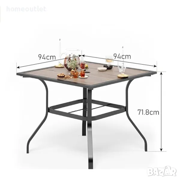 Със своите 94 см (Д) x 94 см (Ш) x 72 см (В), масата спокойно може да събере до 4 души.