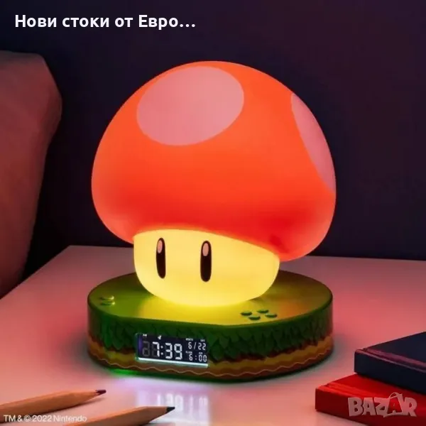 Super Mario Bros Дигитален будилник с гъби с включен звук на играта и светене на нощна светлина