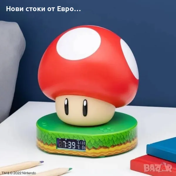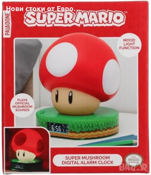 Paladone Super Mario Bros Дигитален будилник с гъби с включен звук на играта и светене на нощна светлина, лицензирана лампа за Nintendo за детска спалня и нощно шкафче, 5,4 инчаСъбудете се с готовия за игра будилник Super Mushroom, който издава официални звуци при включване, свети и има настройки за време и аларма Нощна декорация Заредете сутринта с енергия с цифровия будилник Super Mushet. Тъй като часовникът се предлага в подаръчна кутия с прозорец за гледане, той е страхотен подарък за всеки геймър. Размери 13,8 см (5,4 инча) Супер стоки Повишете ниво с официален артикул на Nintendo, базиран на популярните видео игри Mario. Марио и брат му Луиджи са любими на феновете и незабавно разпознаваеми герои Забавни подаръци за забавни хора. За тези, които търсят готини неща и всичко откачено, лудо и уникално, ние сме горди да създадем най-продаваните играчки, чаши, светлини, декорации и подаръци, които карат хората да се усмихват Официално лицензирани стоки Открийте нова стока за вашата колекция с нашата селекция от колекционерски предмети за мъже, жени, фенове, деца, момчета и момичета, които обичат забавлението на поп културата Забележка Използвайте D-pad и бутоните A и B, за да настроите часа, датата, алармата и да активирате дрямката